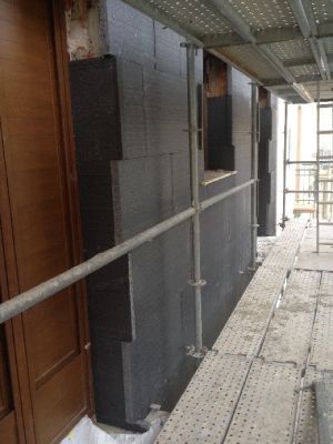 Vivienda proyectada en 2012 y donde el promotor ya tenía la voluntad del ahorro energético realizando el primer sistema aislamiento exterior en fachada (SATE) y calificación energética A. También es de destacar la escalera realizada con estructura metálica y mármol blanco donde la barandilla se resuelve con piezas cerámicas circulares huecas. Un gran trabajo de artesanía.